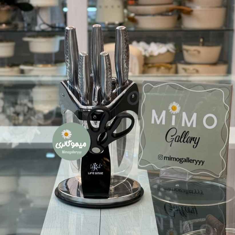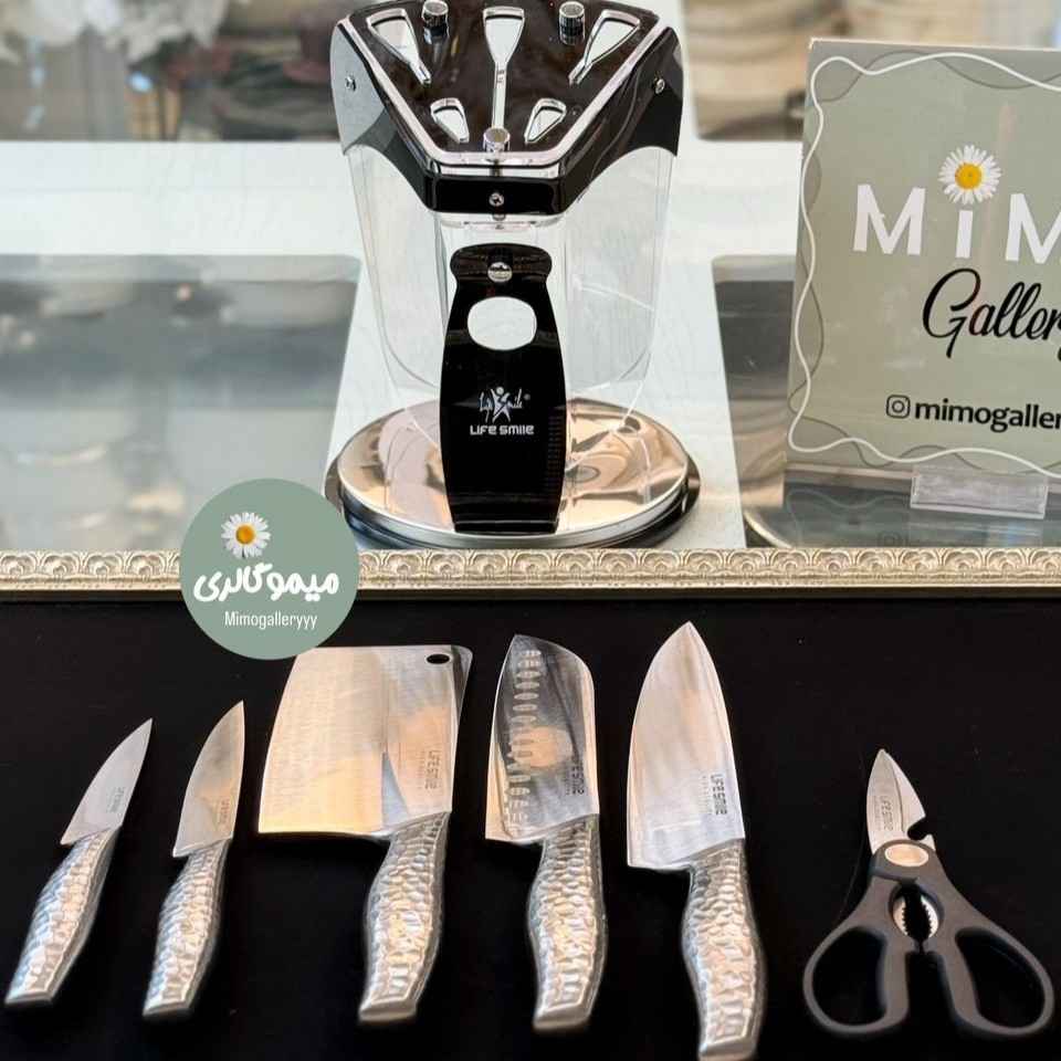 عدد ساطور 1عدد چاقو سرآشپز 1 عدد جاقو مخصوص برش و خردکردن 2 عدد چاقو برش و پوست کندن میوه و گوشت 1 عدد قیچی استند شیشه ای |