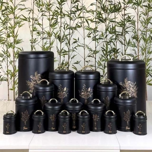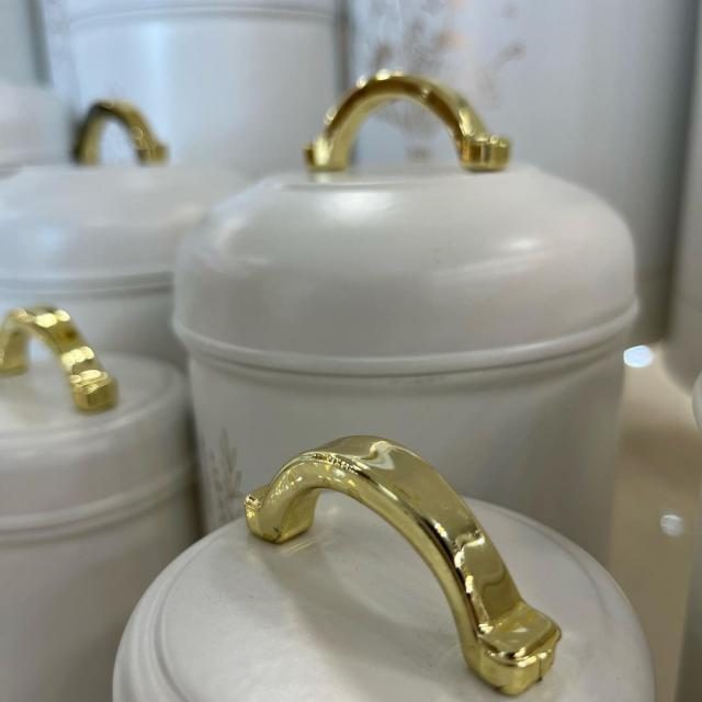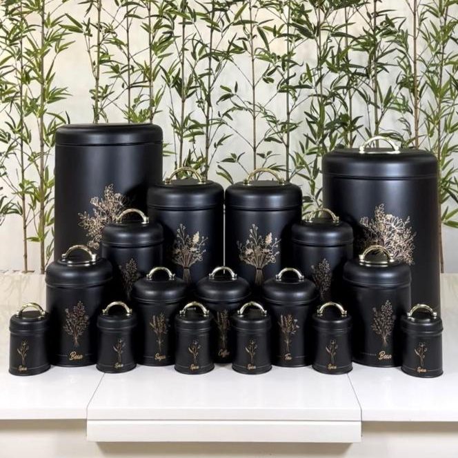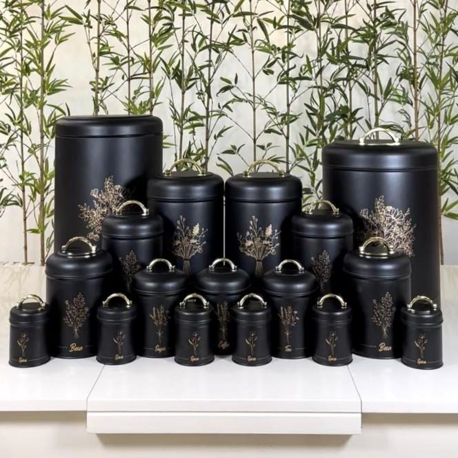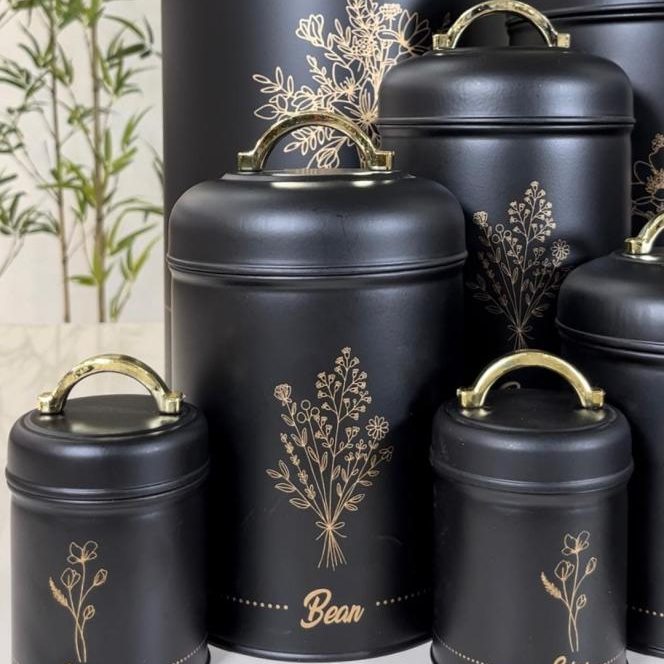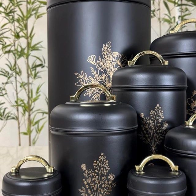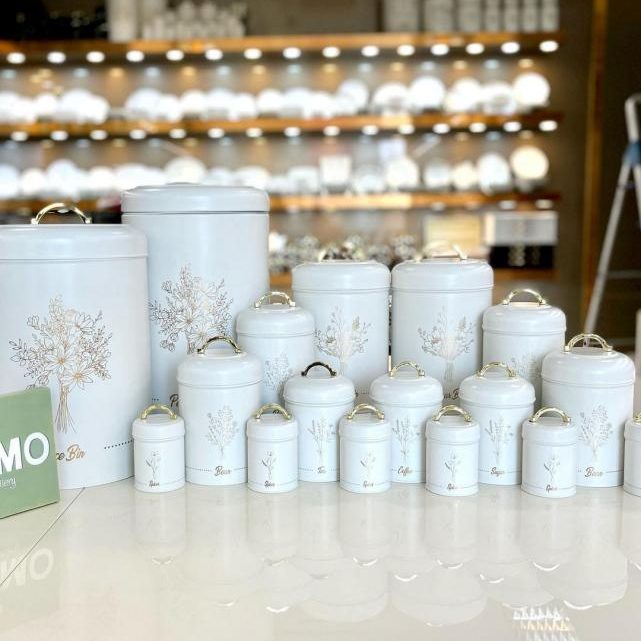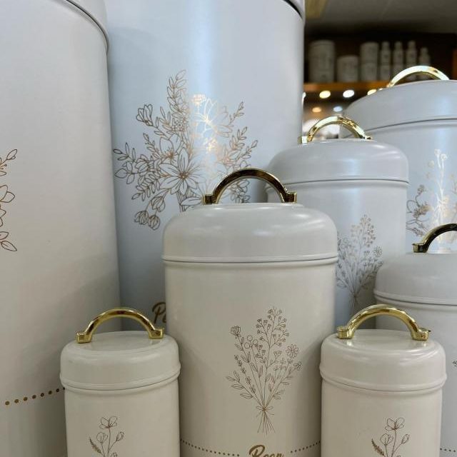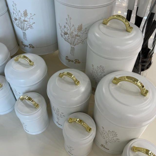 سرویس شامل: 1 عدد سطل زباله پدال دار ( دارای سطل پلاستیکی دسته دار داخل آن ) 1 عدد سطل برنج 2 عدد سطل قند و شکر 4 عدد جا حبوباتی 3 عدد پا سماوری 6 عدد جا ادویه ای 7 پارچه استند کفگیر و ملاقه قاشق کنار گازی |