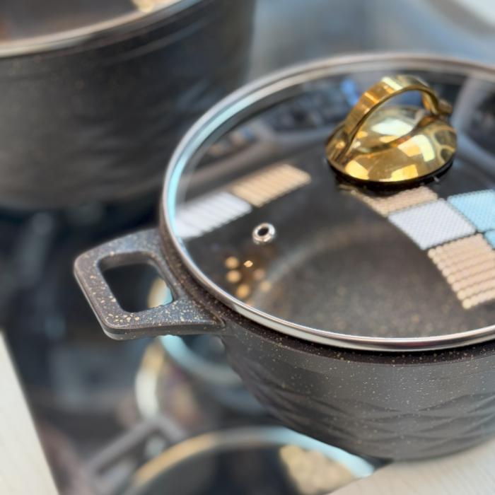 شامل 4 قابلمه 20-24-28-32 یک عدد تابه دربدار دودسته سایز 28 |