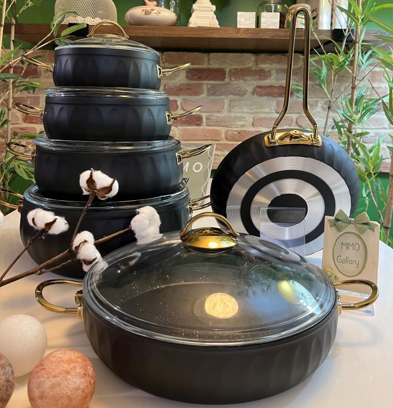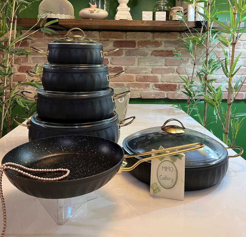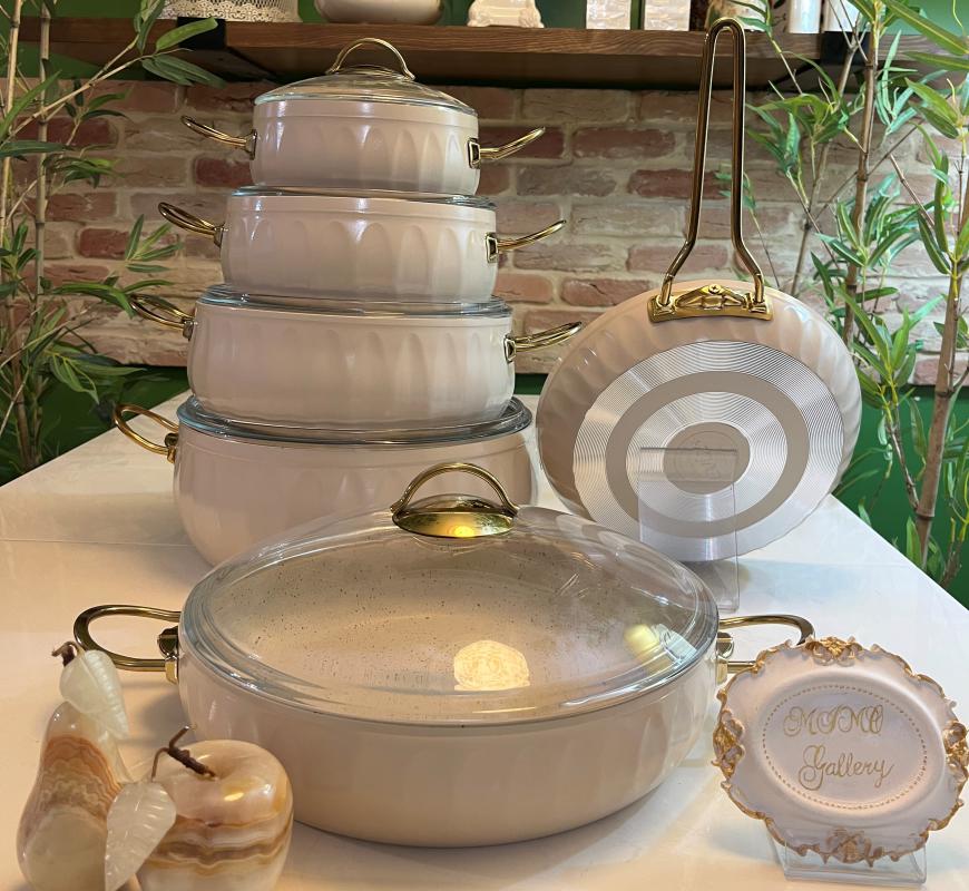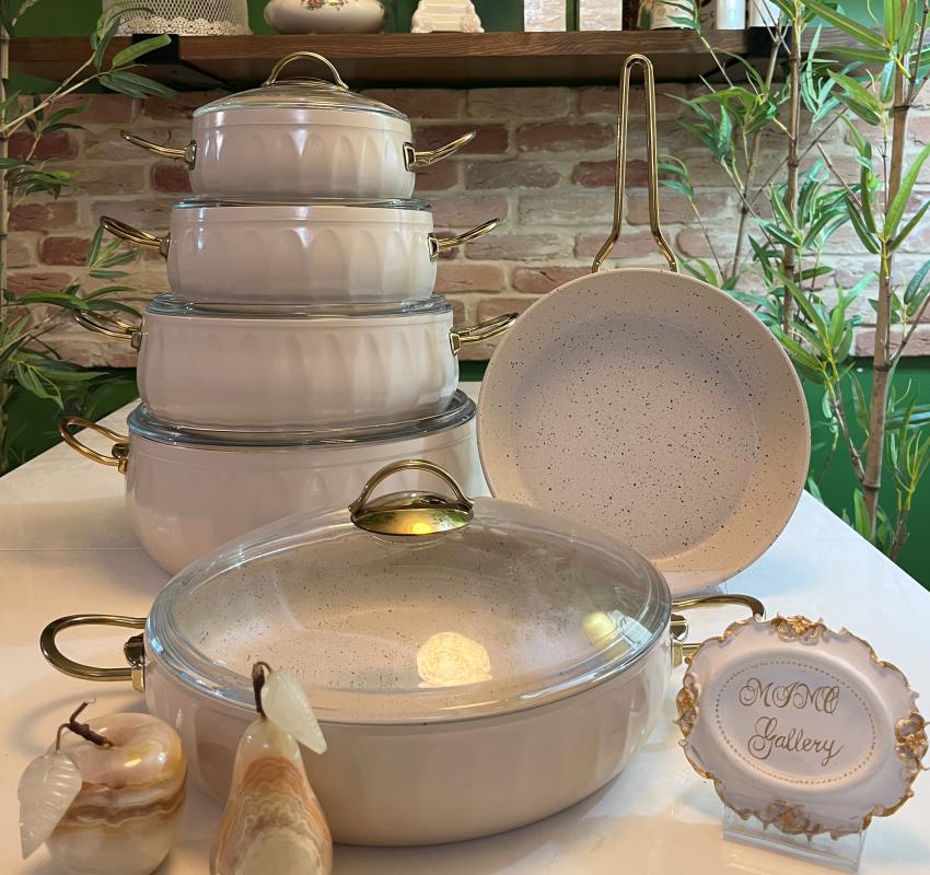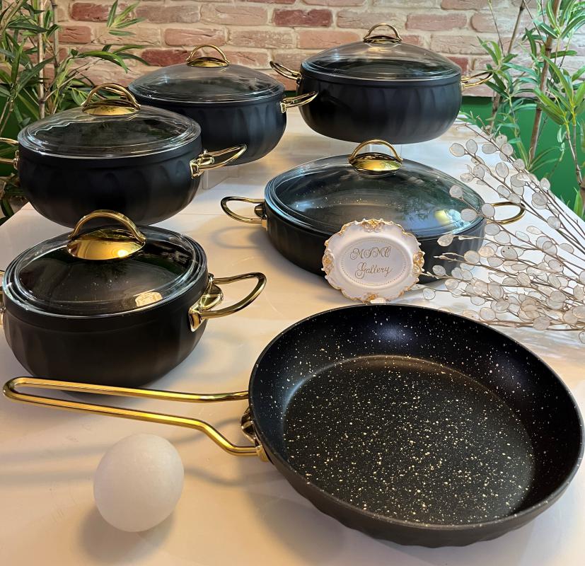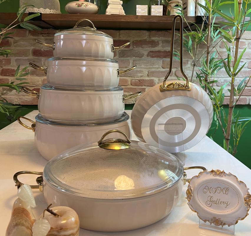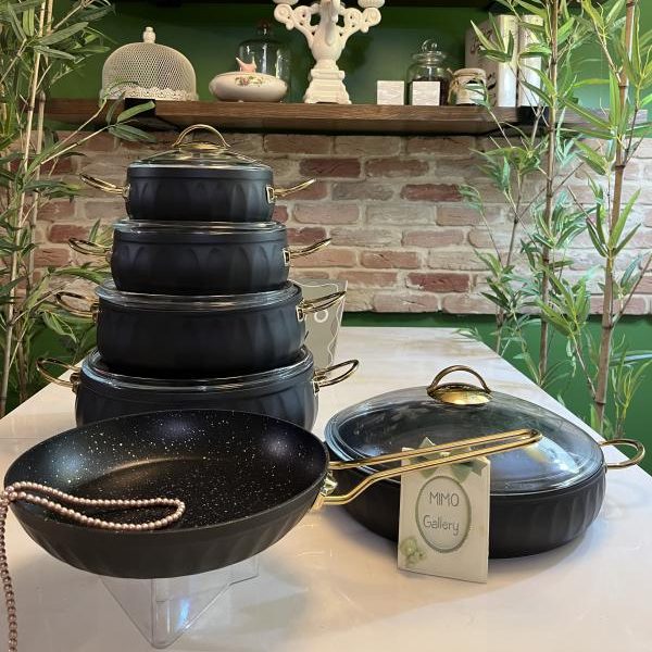 سرویس شامل چهار قابلمه به سایز های۱۸ -۲۲-۲۶ -۳۰ شامل یک عدد تابه دو دسته سایز ۳۰ شامل یک عدد تابه تک دسته سایز ۳۰ |