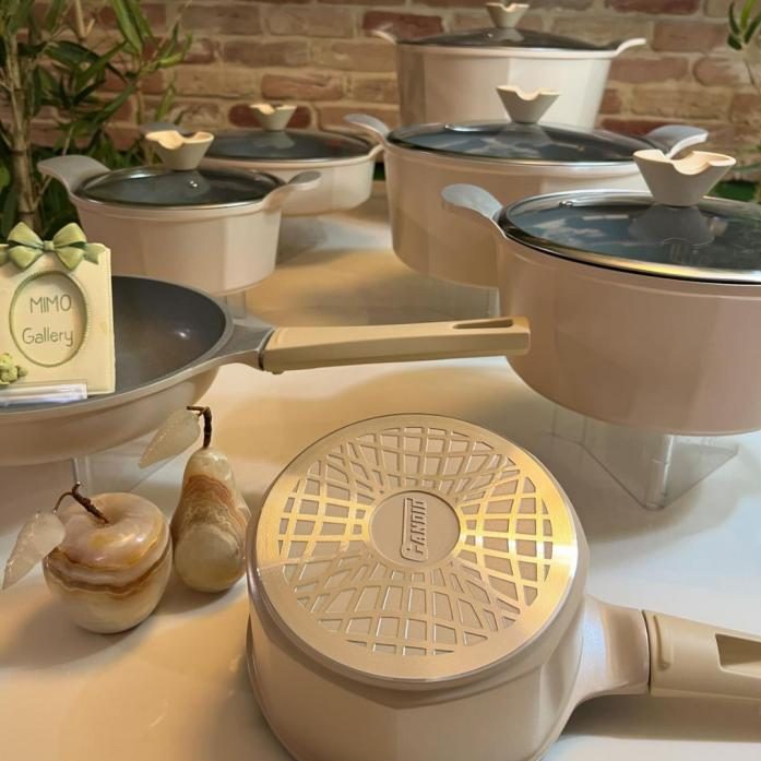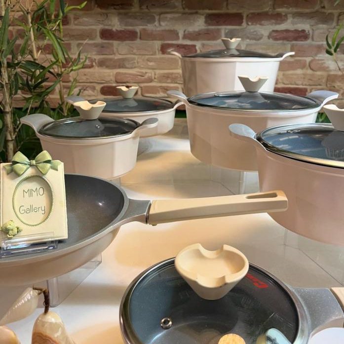 چهار عدد قابلمه در سایزهای 32-28-24-20 شامل تابه دو دسته دربدار سایز28 شامل تابه تکدسته سایز 24 شیر جوش سایز 16 با دیواره های بلند دوعدد دستگیره سلیکونی یک عدد حوله آشپزخانه |