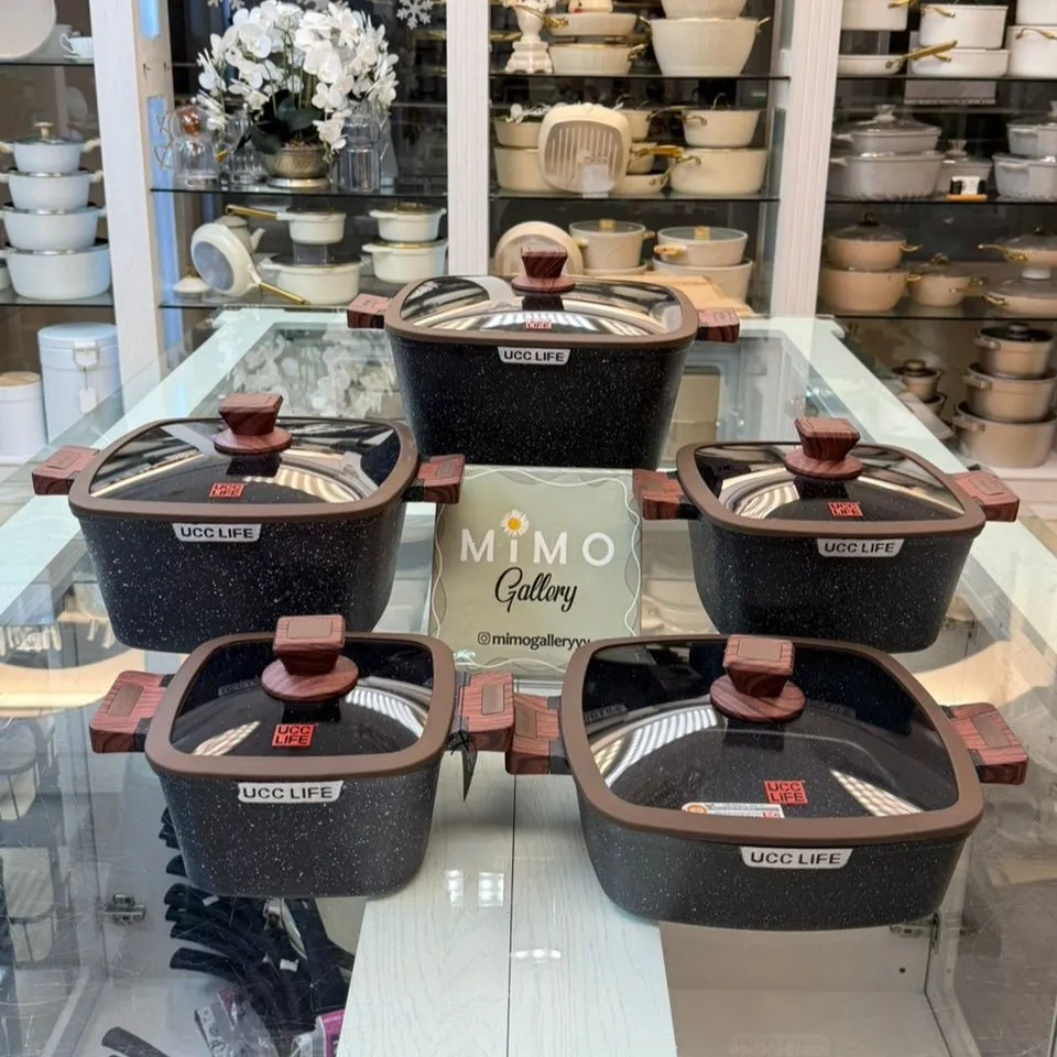 اگر بهدنبال یک سرویس قابلمه متفاوت، مدرن، سالم و بادوام هستید، سرویس قابلمه 10 پارچه یو سی سی لایف قالب مربع انتخابی هوشمندانه خواهد بود. طراحی مربعی، بدنه چدن گرانیتی، کف اینداکشن و دستههای باکالیت مقاوم در حرارت، این محصول را به گزینهای پرطرفدار و بسیار سرچپذیر در بازار تبدیل کرده است.