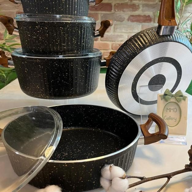 سرویس قابلمه 11 پارچه برند اویزپلاس قالب السا رنگ مشکی *