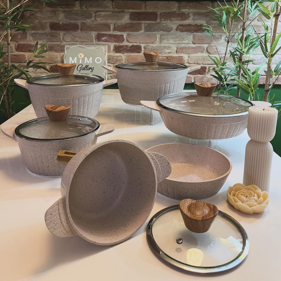 پوشش نچسب: پوشش گرانیتی نچسب این سرویس، پخت و پز را با استفاده از روغن کمتر ممکن میسازد و تمیز کردن آن را آسانتر میکند.