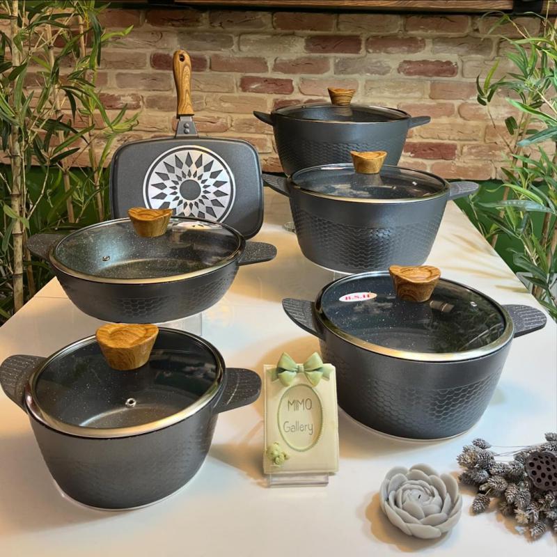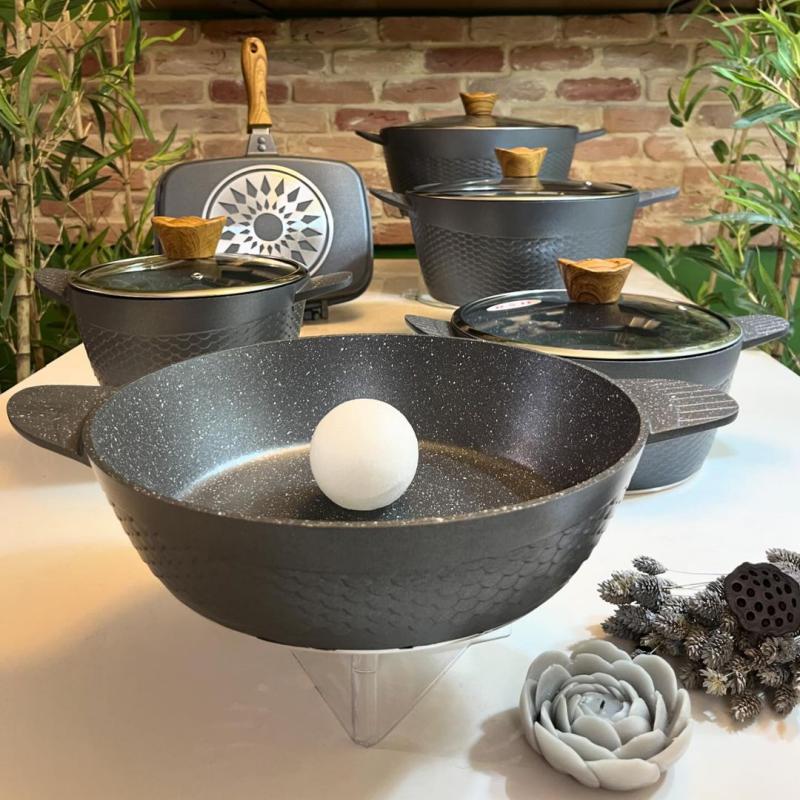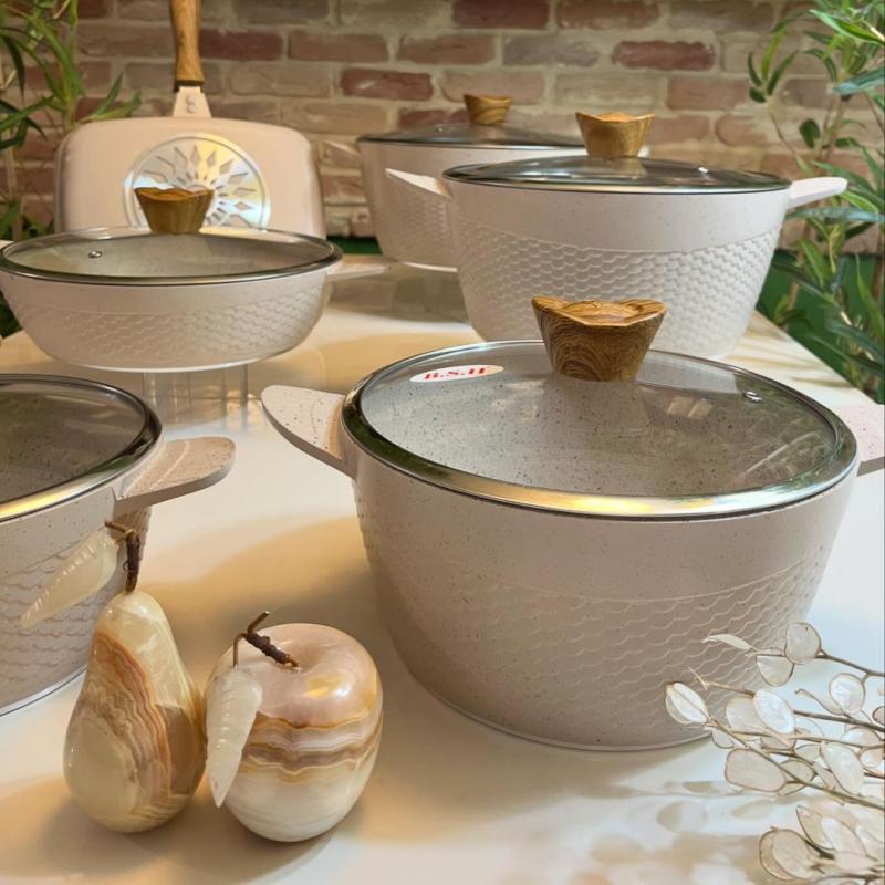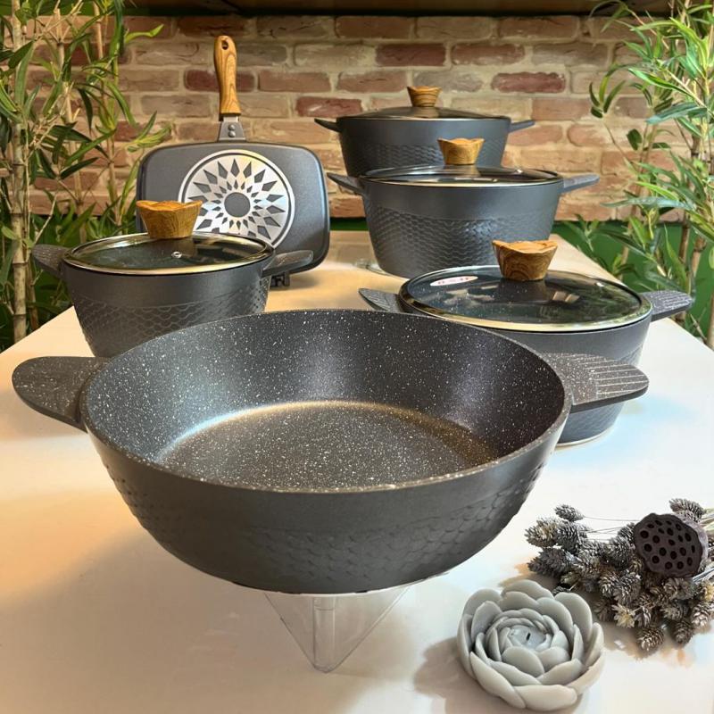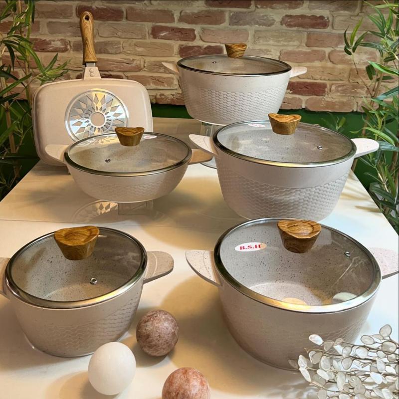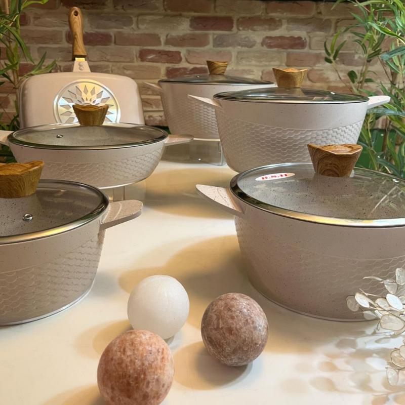 این سرویس با سایزهای متنوع و تابه‌های کاربردی، مناسب برای پخت و پز روزانه و حرفه‌ای است و تمام نیازهای شما در آشپزی را برآورده می‌کند.