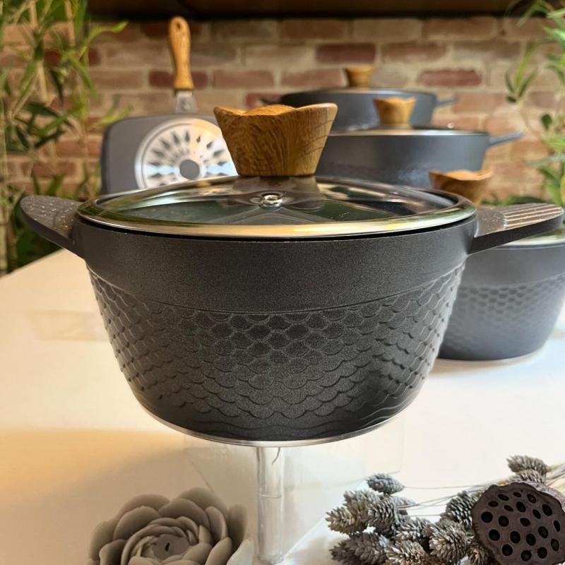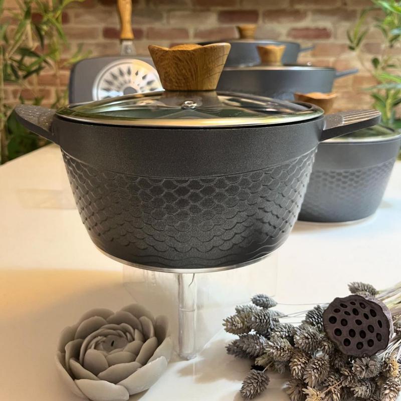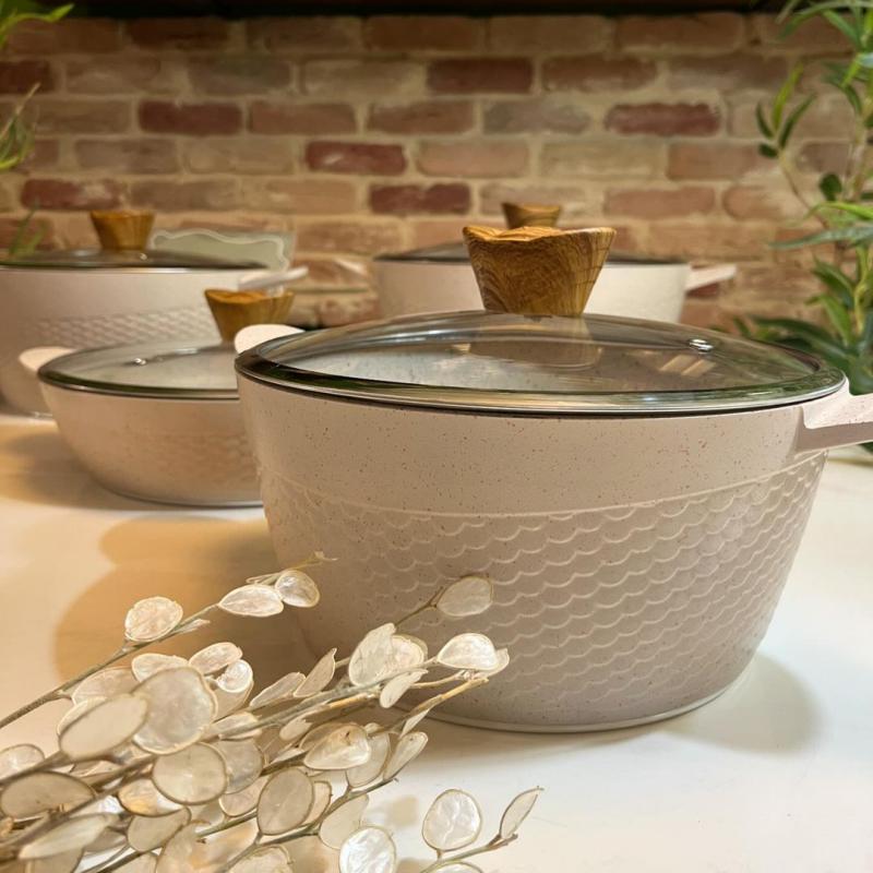 این سرویس شامل چهار قابلمه در سایزهای 20، 24، 28 و 32 سانتی‌متر است که هر کدام برای پخت غذاهای مختلفی مناسب هستند. این قابلمه‌ها با طراحی عمقی و جادار، مناسب برای پخت انواع غذاها از جمله سوپ، خورش، برنج و غیره می‌باشند.