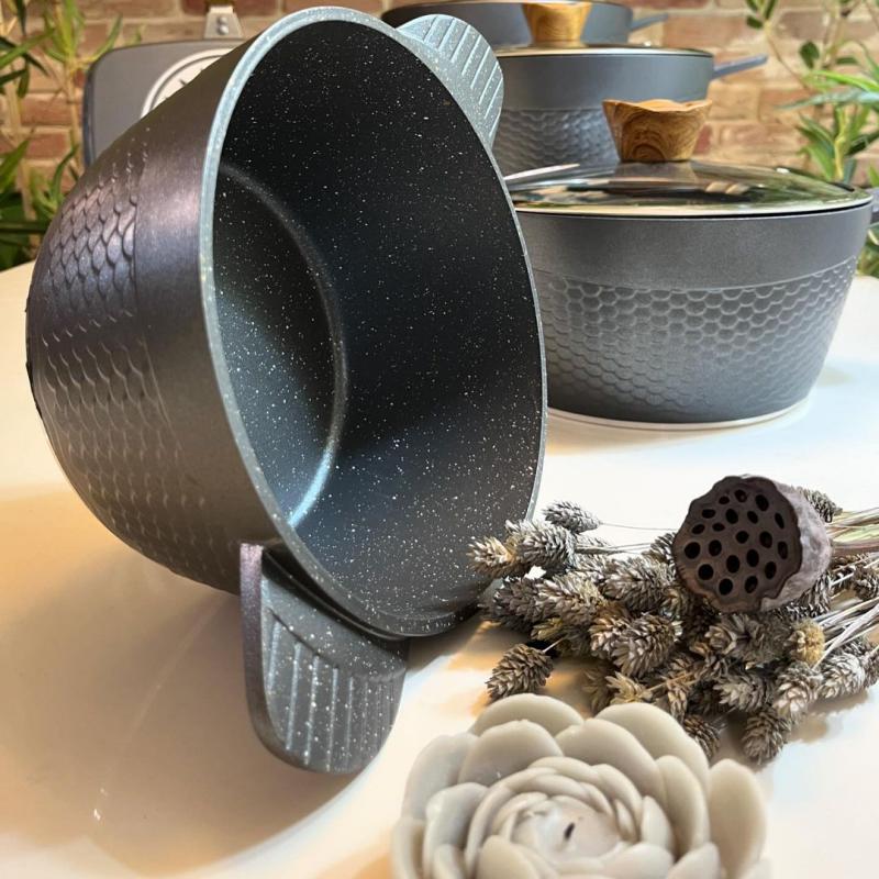 این سرویس از چدن گرانیت با پوشش نچسب ساخته شده است که باعث می‌شود غذا به قابلمه نچسبد و تمیز کردن آن بسیار آسان باشد. این ویژگی باعث می‌شود که این سرویس برای پخت و پز روزانه و حرفه‌ای بسیار مناسب باشد.