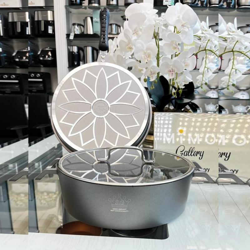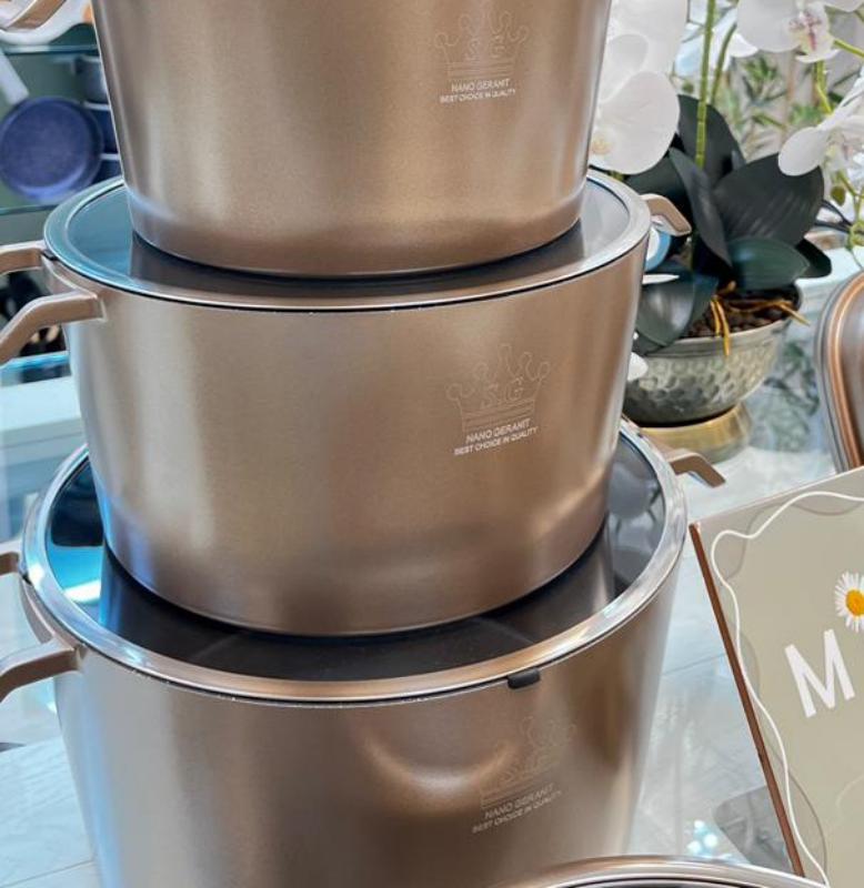 5 عدد قابلمه در سایزهای 16-20-24-28-32 تابه دربدار تکدسته در سایز 24 تابه دربدار دودسته در سایز 28 تابه رژیمی دوطرفه گرد در سایز 32 نکته: در رنگ های مشکی و طوسی تابه رژیمی گرد و در سایر رنگ ها مستطیلی شکل میباشد. |