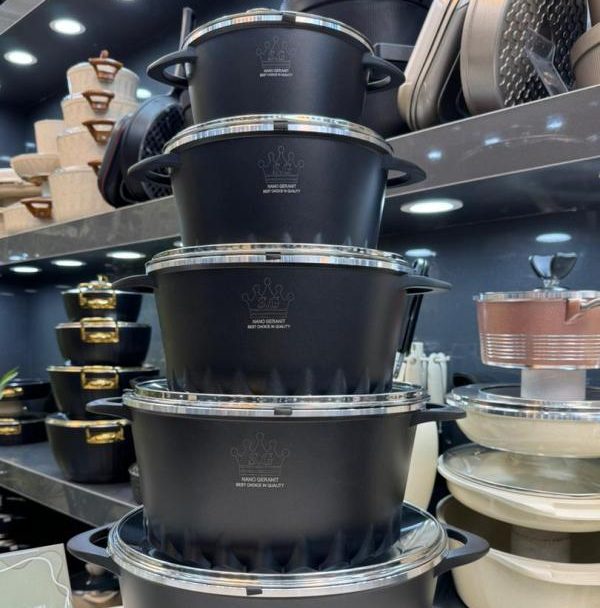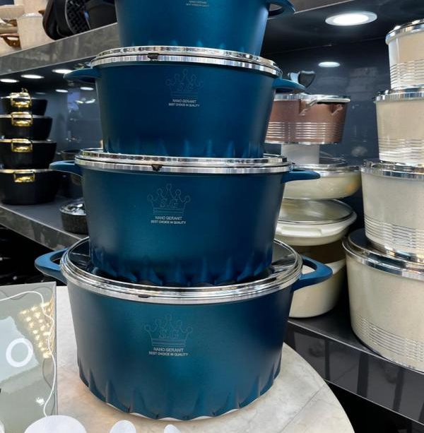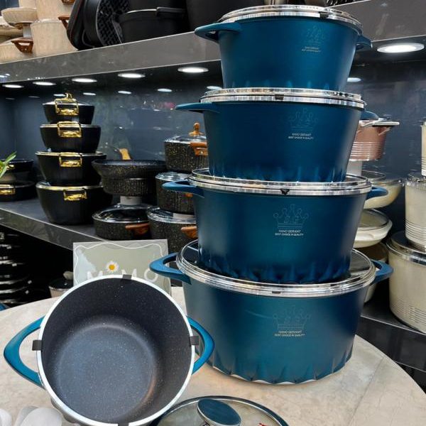 5 عدد قابلمه در سایزهای 20-24-28-32-36 تابه دربدار دسته دار در دو سایز 24 – 28 تابه مرغ و ماهی 3 پارچه سایز 42 ( ابعاد با دسته 45 سانت و ارتفاع دو تابه 16 سانت) تابه رژیمی دو طرفه با قابلیت جداشدن سایز 32 |