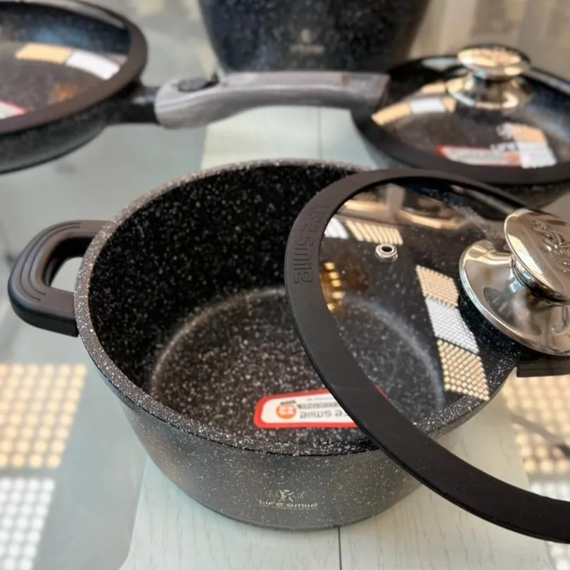سرویس قابلمه 24 پارچه برند لایف اسمایل کد LIFEP17S-24BLUE با رنگ طوسی خاص، بدنه مقاوم چدن گرانیتی و کف اینداکشن، دقیقاً مطابق با نیاز خانواده‌های امروزی طراحی شده است. در ادامه این ریپورتاژ جامع، تمام ویژگی‌ها، مزایا و دلایل خرید این سرویس قابلمه را به‌صورت کامل بررسی می‌کنیم تا با اطمینان تصمیم بگیرید.