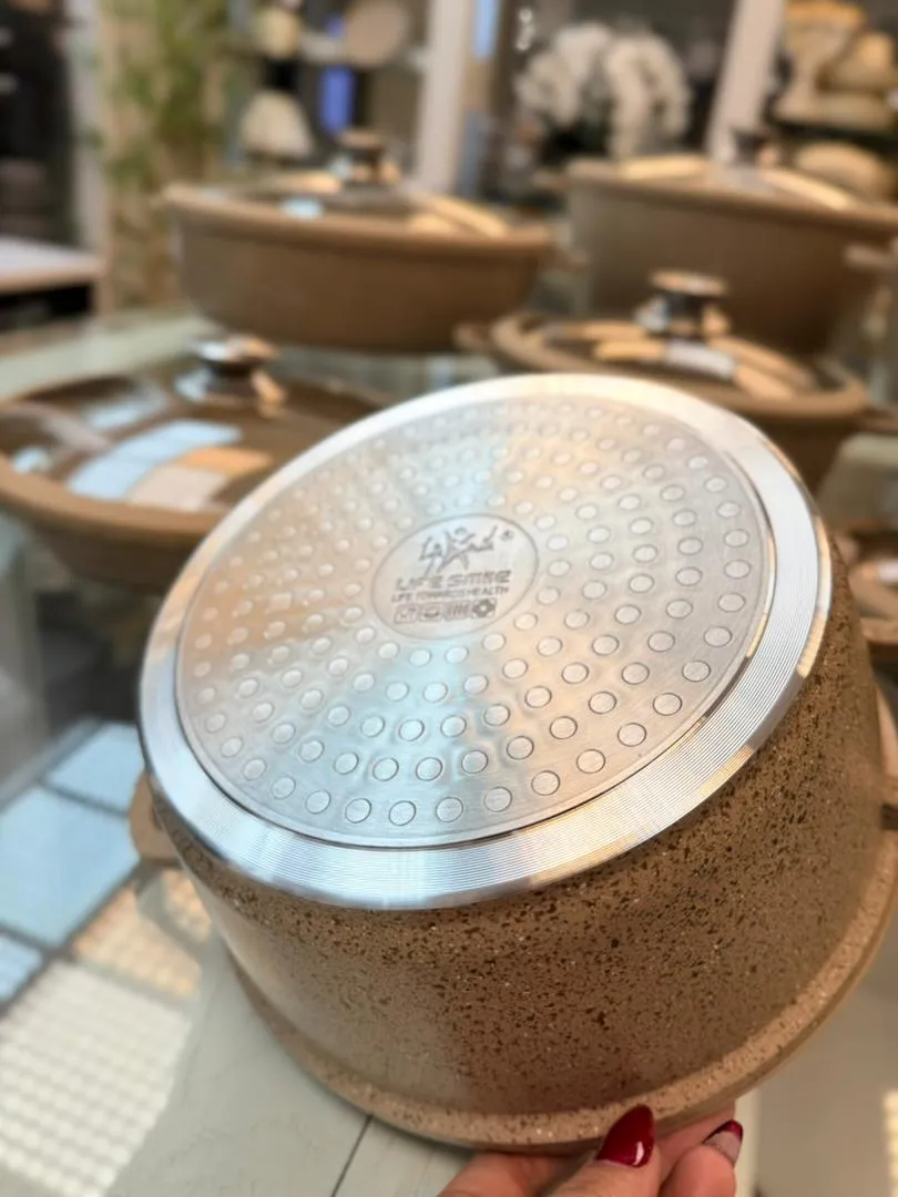 طراحی بدنه و دسته‌ها کاملاً ارگونومیک است و در کنار دستگیره‌های سیلیکونی نسوز، امنیت و راحتی کار با ظروف را افزایش می‌دهد. این جزئیات نشان می‌دهد که در طراحی این محصول صرفاً به زیبایی ظاهری توجه نشده، بلکه تجربه کاربری نیز در اولویت قرار گرفته است.