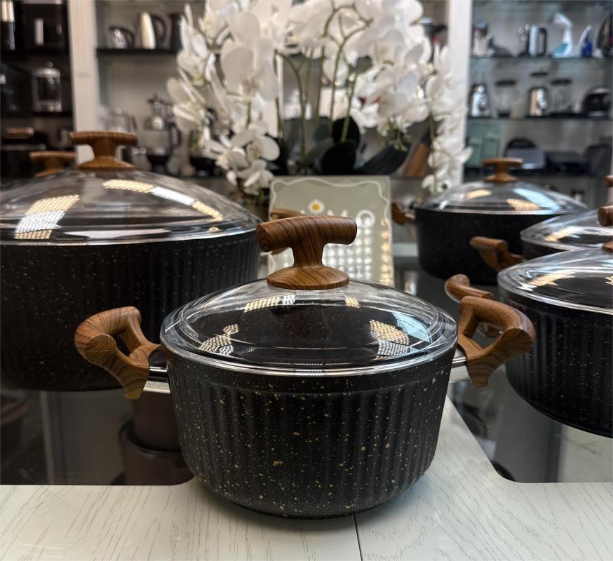 سرویس قابلمه 7 پارچه چدن گرانیتی اویز پلاس رنگ مشکی *