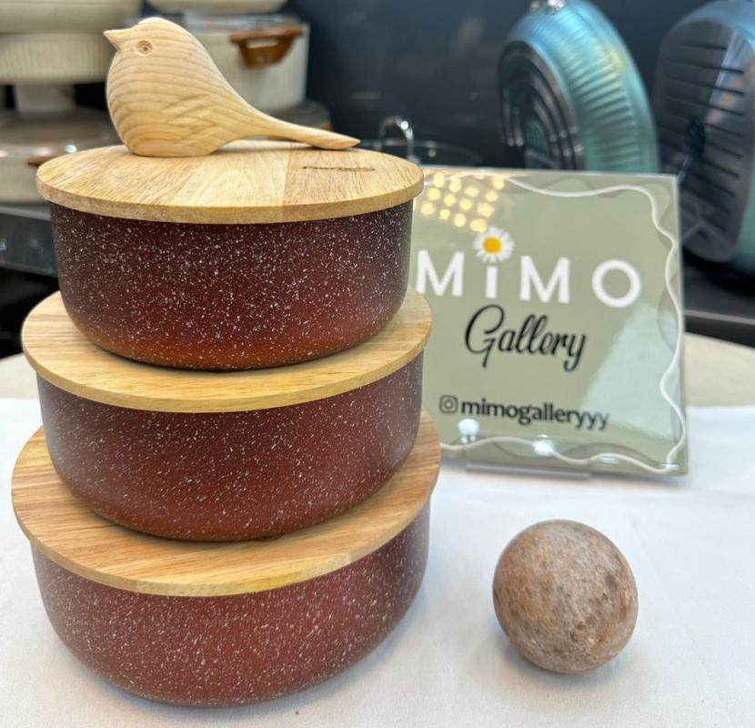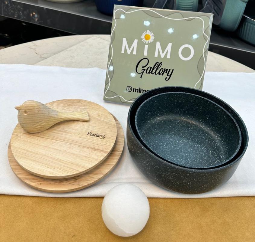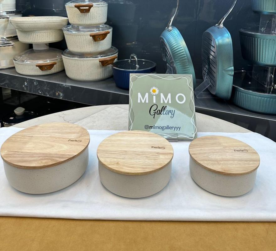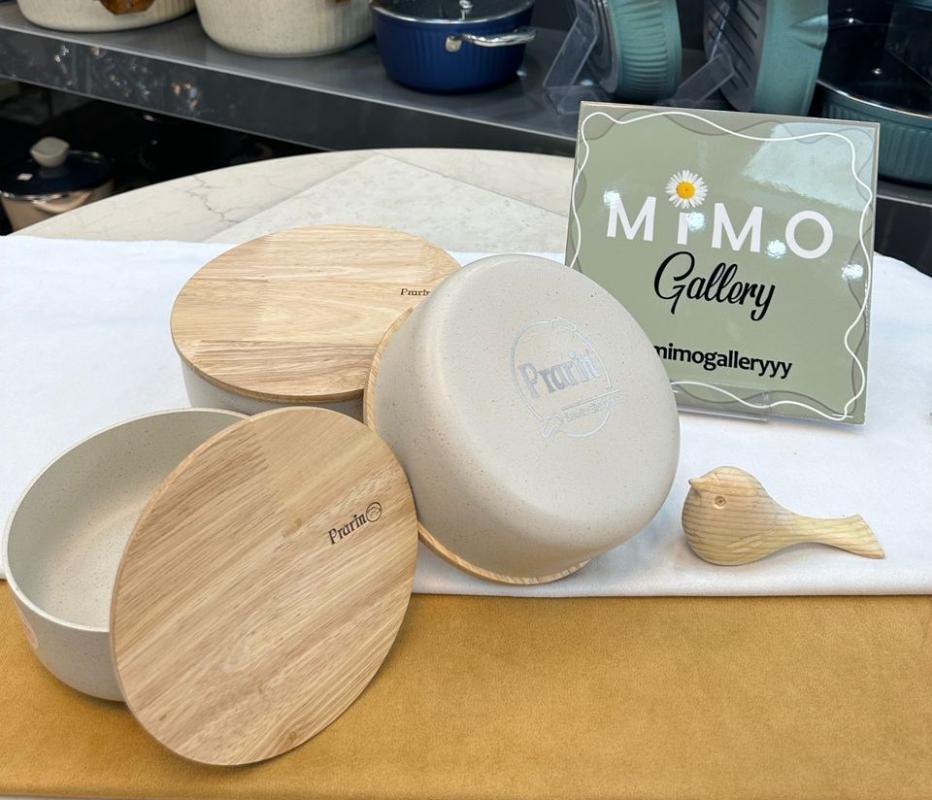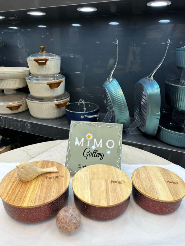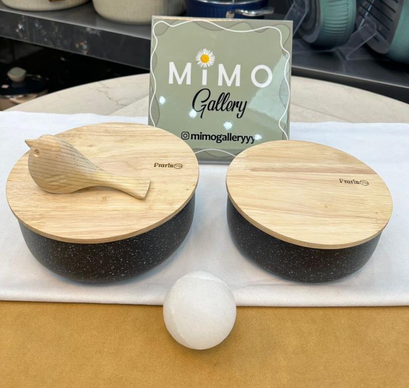 ظرف نگهدارنده غذا چدن گرانیت با درب چوبی برند پرارین
