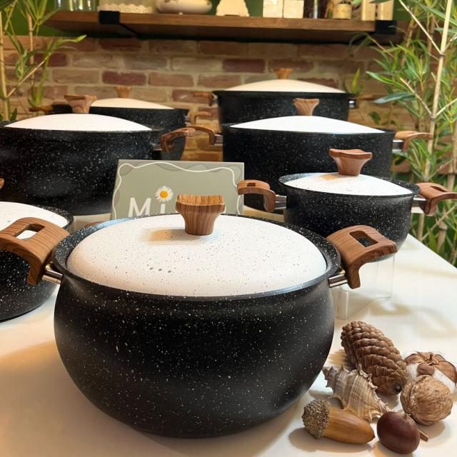 قابلمه تکی هاناتک رنگ مشکی با درب سفید در سایزهای مختلف