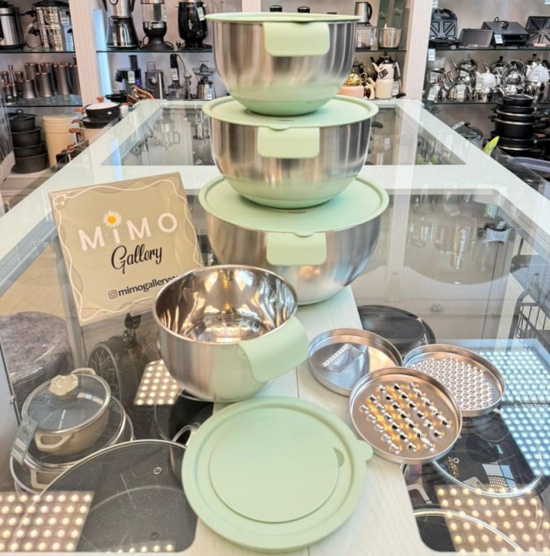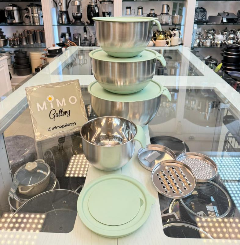 کاسه استیل دربدار 4 عددی میکسینگ بول به همراه درب رنده ای مدل تکدسته