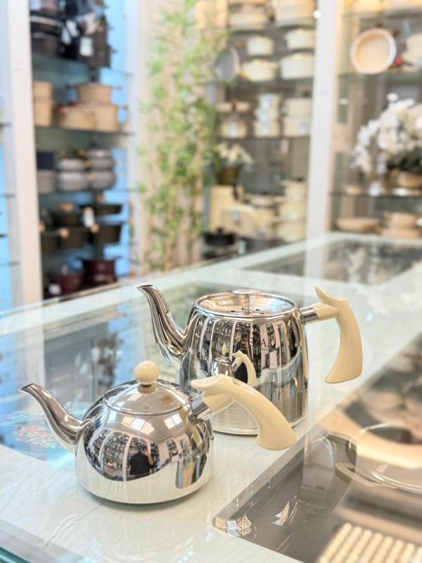 کتری قوری استیل نزاز طرح دسته بغل باکالیت مدل 2412