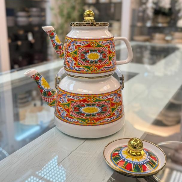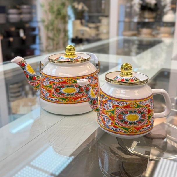 کتری قوری لعابی طرح دار لورنز در طرح های مختلف