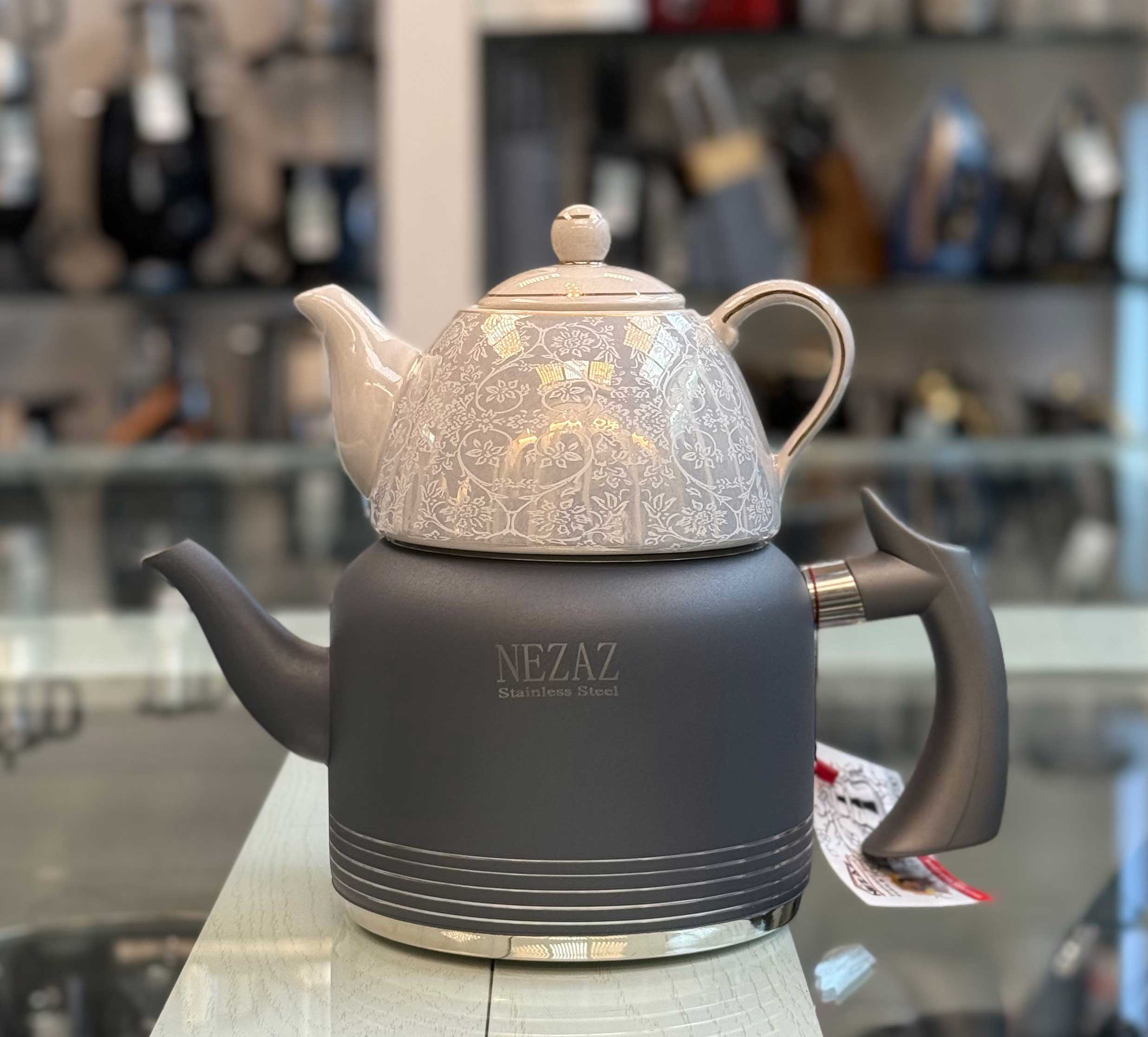 کتری قوری روهمی دسته بغل طراحی بسیار خاص و جذاب کاملا امتحان پس داده |